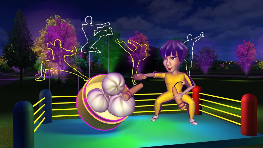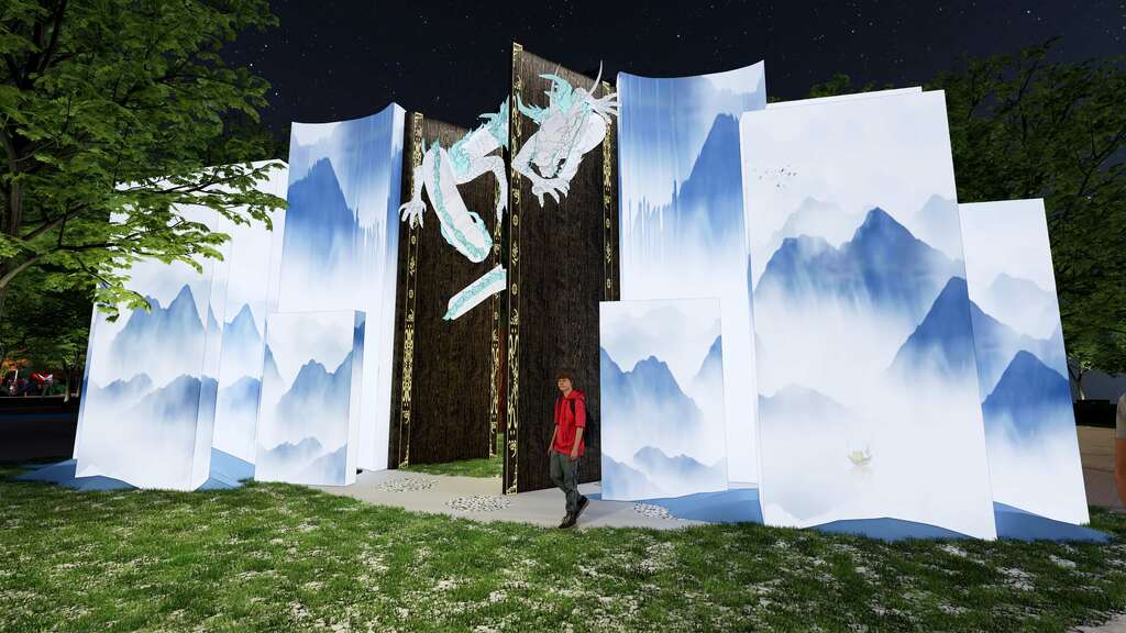 Using flourishing oriental creatures as the foundation, all kinds of blessed elements are presented in combination with vivid colors and lights together with existing flowers and trees to create an overall tranquil ambience, realistic and surreal at the same time, for visitors to enjoy.