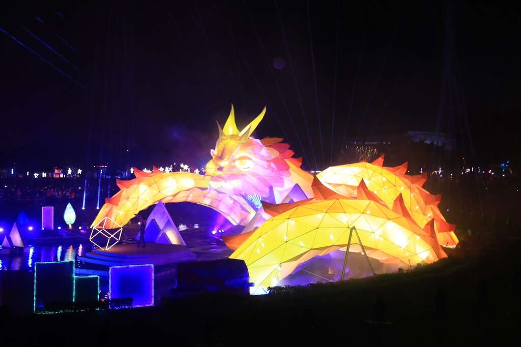 This offers Taiwan’s first-ever mechanical lantern and light show combination parade on the water! The Central Taiwan Lantern Festival’s main “Taichung Bravo”lantern transforms Central Park’s water retention basin into a theater stage, with a mystical dragon swirling over the basin’s water-land boundary. The main dragon lantern, 76 meters long and 27 meters wide, includes a performance with dancers rotating, throwing and catching illuminated cubes to portray a dragon having fun with dragon balls and joins a mobile carrier over the water of about 150 meters to present a splendid main lantern show.