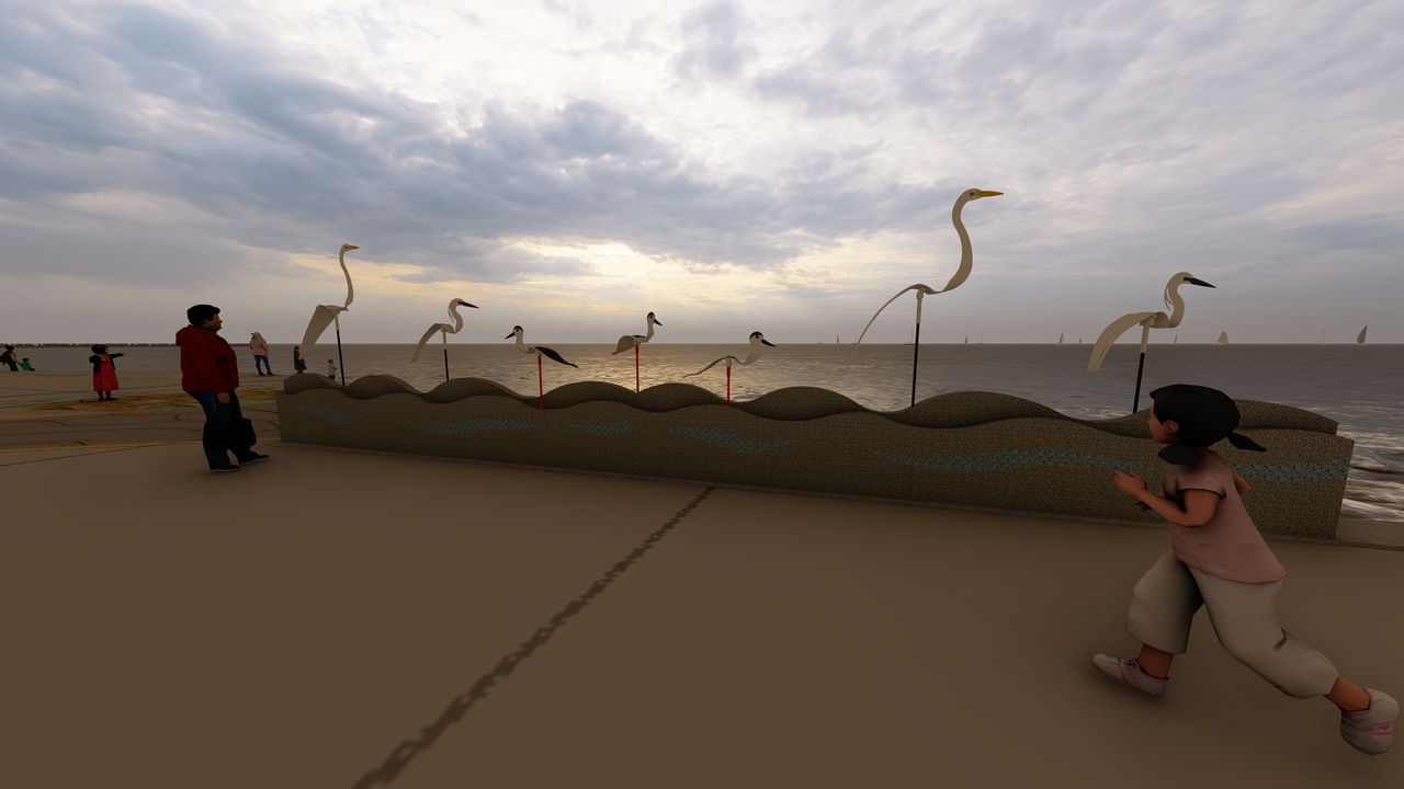 👉🏻戏水区既有半圆形广场,整建为观日亲水阶梯