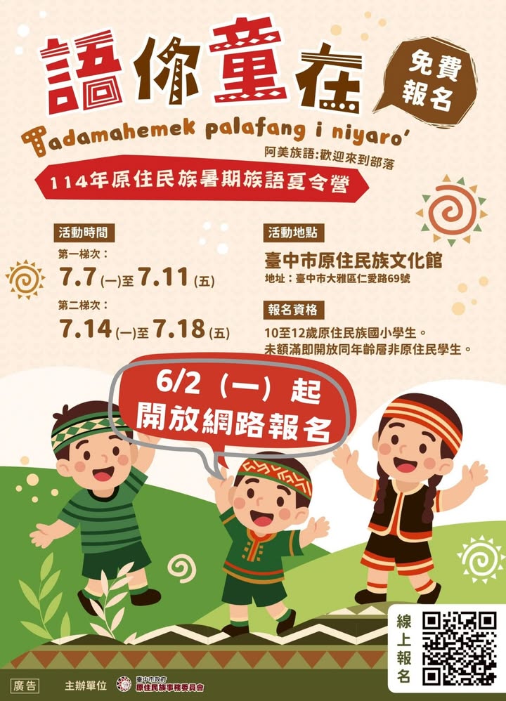 🎉114年原住民族暑期族语夏令营~免费报名🎉