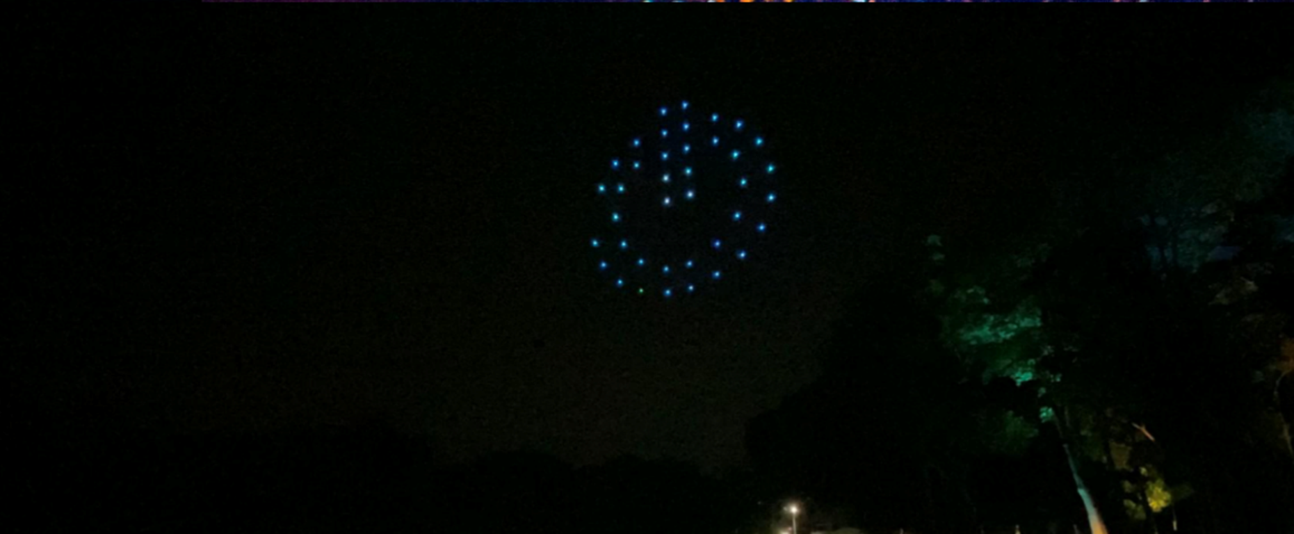 高空中用无人机排列出三个旋转的圆,象徵生命的开始是一个圆满。中间的圆,象徵着和我们连结在一起的每一个人事物。最後我们努力着让生命在结束前也能圆满。