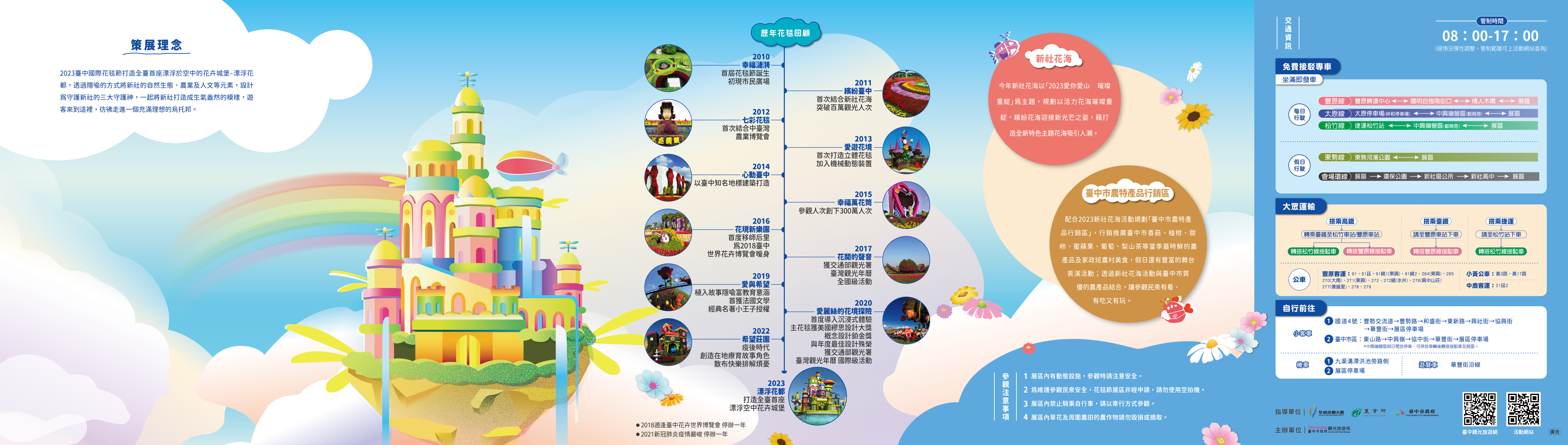 活动现场每日上午8时至下午5时实施交通管制,欢迎民众多利用大众运输工具前往。