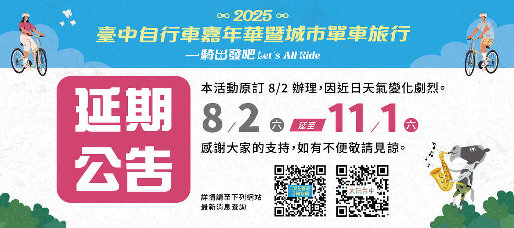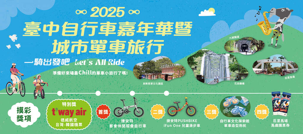 还有趣味活动、精美好礼等你来解锁~快揪团报名,用双轮骑出台中的慢活魅力吧!