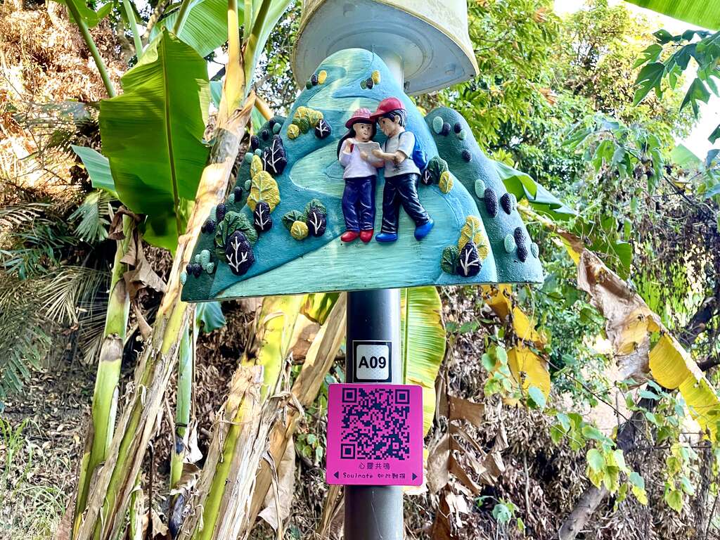 观旅局进一步说明,为提升互动性与趣味性,步道沿线设置多处QR Code与甜蜜互动装置,游客可边走边扫描、阅读故事内容,或留下合影纪念。来到山顶的「小狗秋千」时,不妨停下脚步,透过数位互动深入了解「小久」与「阿知」对未来的想像,或许也能在故事中,看见自己与家人、伴侣的影子。这不只是一趟爬山行程,更是一场与自己、与重要之人对话的心灵旅程。