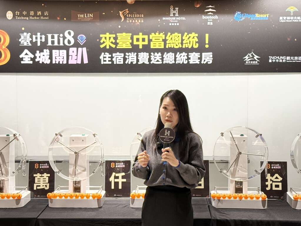 观旅局补充,「来台中住宿消费送总统套房」系列活动後续将於1/28林酒店、2/9金典酒店接力办理,并於观旅局脸书粉丝专页「大玩台中」直播,持续以多元行销方式推广台中观光,欢迎民众安排来台中旅游住宿,享受优质旅宿服务,感受城市魅力。诚挚邀请全国民众把握「台中Hi8全城开趴」期间规划台中之旅,入住台中旅宿、登录发票参加抽奖,为旅程增添更多期待与惊喜(台中嗨8 全城开趴活动官网:https://www.taichung.gov.tw/hi8 )。