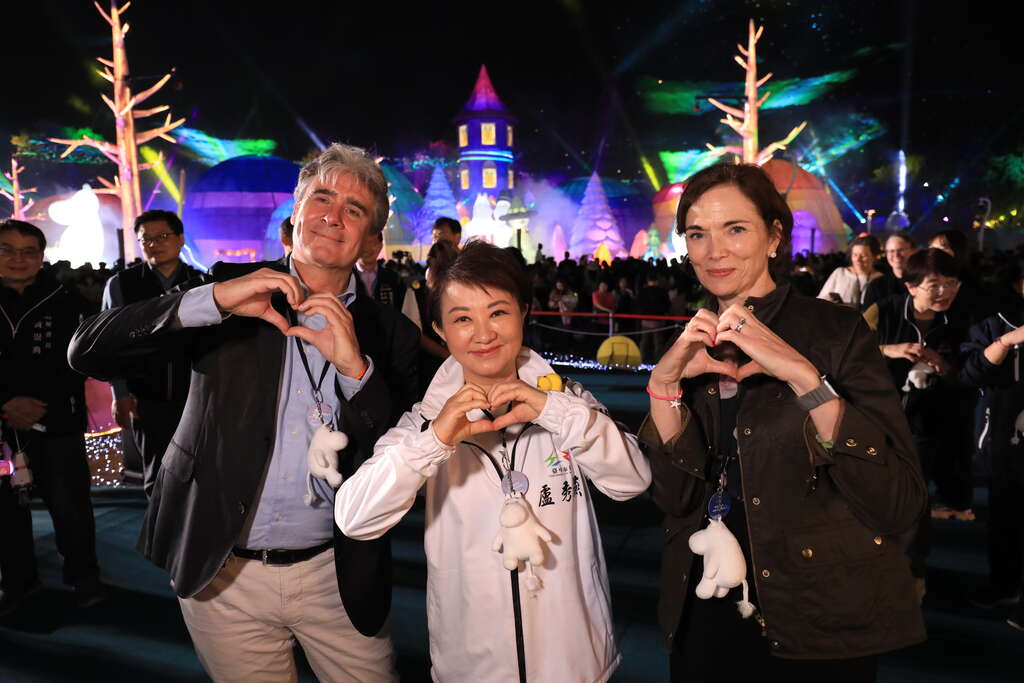 卢市长指出,台中多年来被评选为全台最幸福的城市,今年灯会主题IP特别邀请来自芬兰、象徵幸福意象的姆明,盼藉由幸福城市与幸福国度的结合,带给大家温暖快乐。