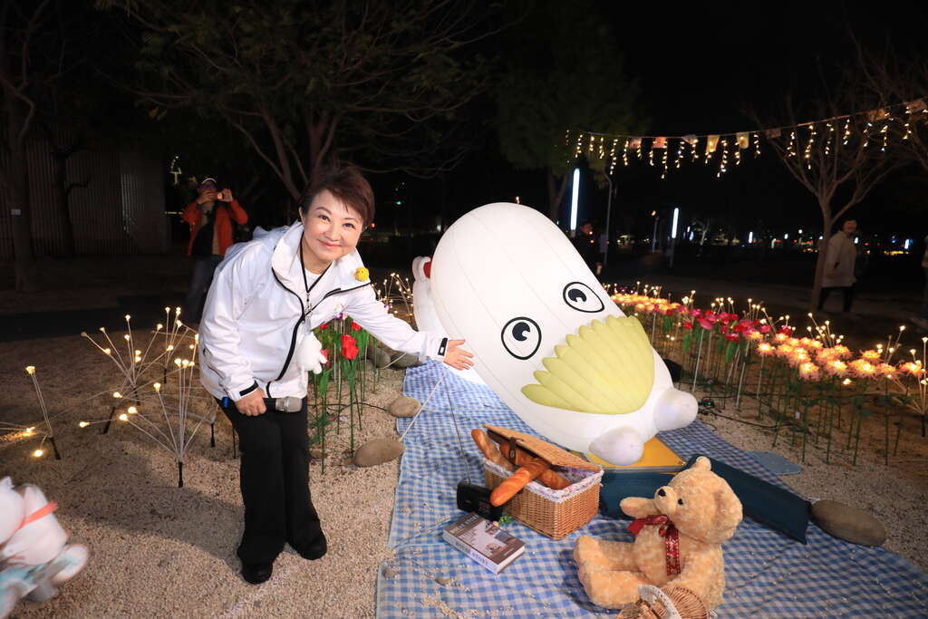 卢市长说明,今年灯会规划七大灯区,融合科技、美学、传统文化、故事与卡通元素,让不同年龄层都能找到喜爱的内容。现场除赏灯外,也提供夜间野餐与休憩空间,让民众能与家人朋友一边享用美食、一边赏灯交流。