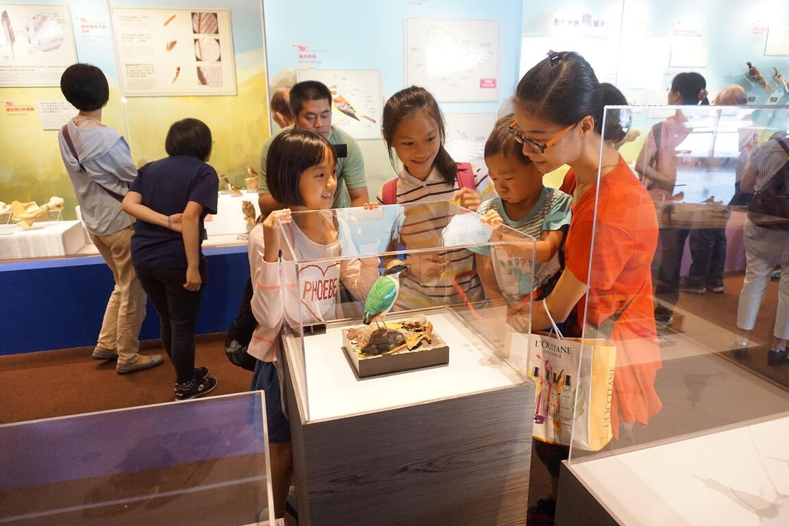 ​快来看!木头变鸟了! 科博馆「明察秋毫」展野鸟生态木雕-小朋友观赏中