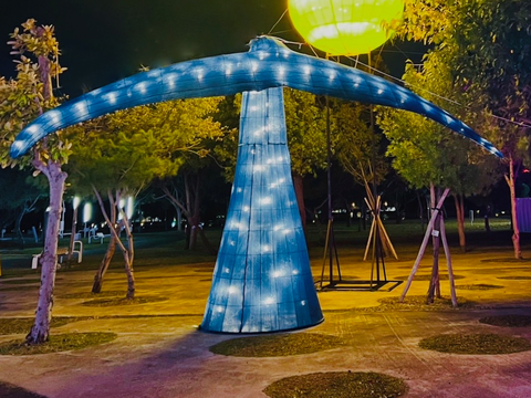 农业局诚挚邀请民众前来参与这场结合艺术、教育与环保的灯光冒险,共同探索蓝色奇蹟,另团队持续加强春节施工期间的安全围设,也请游客遵守相关安全规定。