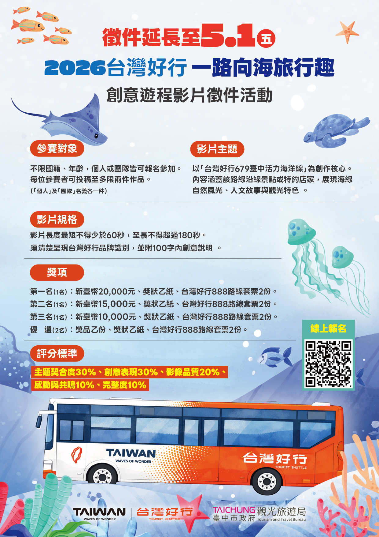 2026 台灣好行 一路向海旅行趣 創意遊程影片徵件活動