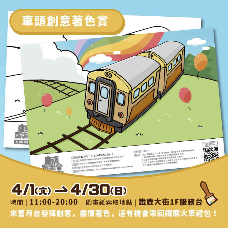 車頭創意著色賞!索取圖畫紙盡情著色,有機會帶回鐵鹿火車禮包