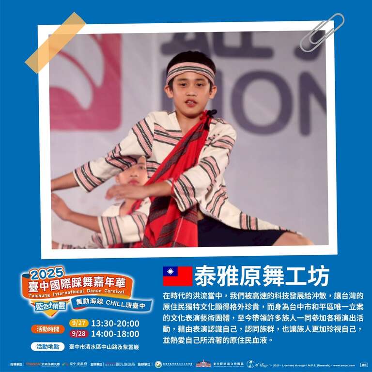 看別人跳舞是否都會躍躍欲試呢?2025臺中國際踩舞嘉年華特地精選了三個來自國內外,具有各式各樣風格的舞蹈團體,透過與舞團團員面對面的互動教學,帶領您體驗各國舞蹈的繽紛美妙。機會難得!邀請您來一同體驗2025臺中國際踩舞嘉年華!