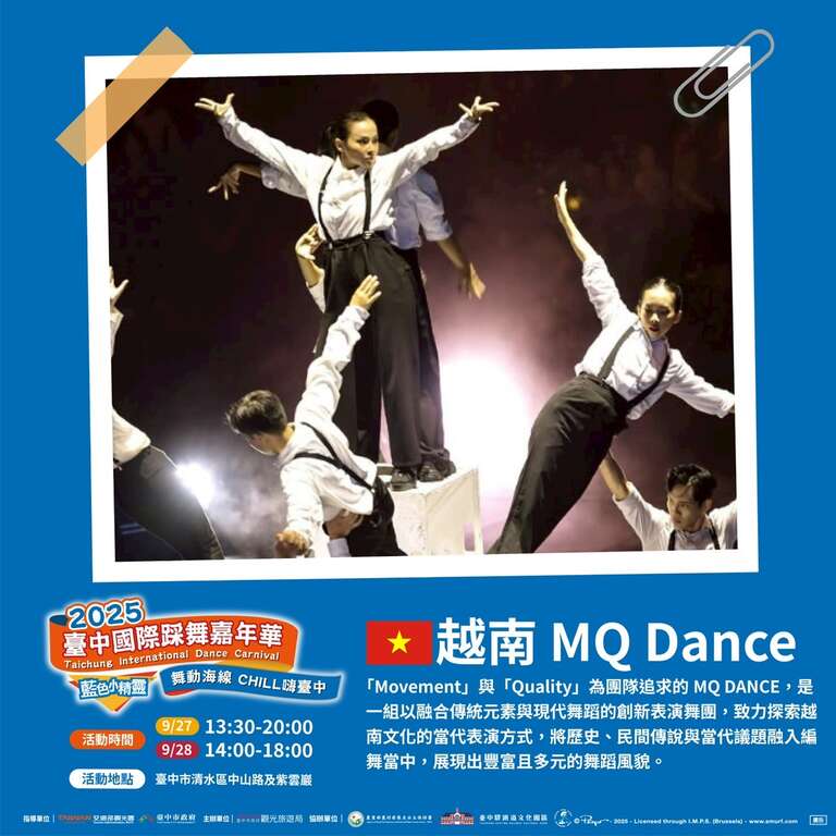 「2025臺中國際踩舞嘉年華」將於9月27日至9月28日熱鬧登場,首度移師清水區辦理,將邀請多組國內外表演團體,包含來自西班牙、日本、韓國、印尼、越南、菲律賓及馬來西亞等國的舞蹈表演團體於清水中山路與紫雲巖前熱力演出。