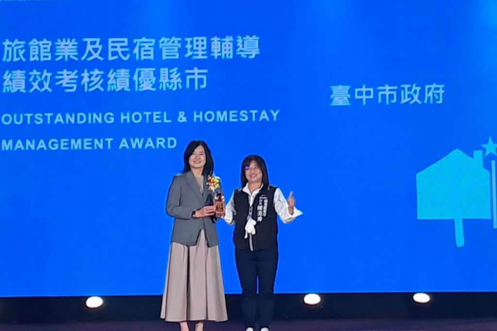 交通部觀光署今(2)日於台北圓山大飯店舉行「2026觀光節慶祝大會頒獎典禮」,表彰國內外觀光產業卓越貢獻,中市府在22個縣市「114年度考核地方政府旅宿業管理輔導績效評比」中,再次展現卓越績效、連續3年榮獲「特優」最高殊榮。