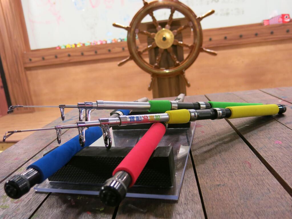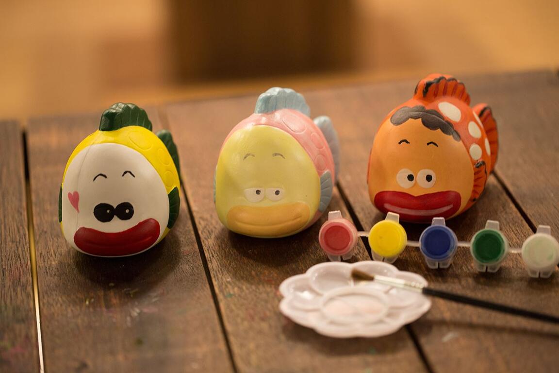 童趣十足的魚撲滿、釣具組;達人級的假餌、釣竿,全都可以發揮創意彩繪出屬於自己的釣魚用品。
