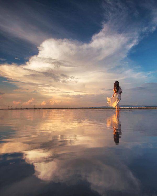 網路上都說一生必去的景點,最為之驚豔的必定是夕陽時分的美景,當太陽落下天空出現的色彩變化,由黃轉紫像水彩暈染般的潑灑在整面天空,除了木棧道,在稍微遠一點的遊客中心,其實還有一座景觀橋,雙塔柱雙弧曲線的造型橋,僅有行人和自行車能在上頭移動,不過那兒風真的很大,不只手上東西要拿穩,腳步也必須站穩才能不被吹倒呀!