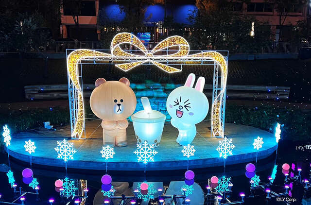 This year, for the first time, Taichung has collaborated with LINE FRIENDS to erect a 16-meter-high pink Christmas tree in front of the Old Taichung Train Station. Brown and Cony, holding Taichung's specialty sun cakes and ice cream, have created a 'Sweet Music Box' together with a 360° rotating Christmas tree. Additionally, the lantern exhibition area for this event has expanded to include Zhongshan Road this year, providing a larger event space and abundant content, allowing visitors to immerse themselves in the romantic and sweet carnival atmosphere