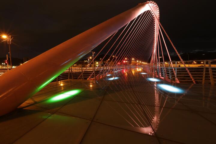 昼も夜も、大坑粉紅情人橋は魅力的な風貌を見せてくれます。近くで見ると、橋塔は男性のたくましい肩のようですが、遠くから見ると笑顔を浮かべた女性の眉のようで、情人(恋人)橋の面目躍如と言ったところです。橋面がガラスであるため、夜にはガラスの橋面に映る橋の姿と橋そのものが大きなハート形を描き出します。ここに来てその中に包み込まれれば、恋人たちの想いが静かに伝わってくるでしょう。