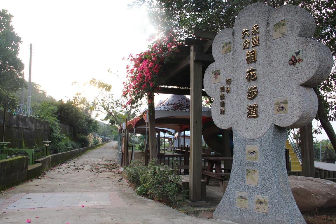 「永豊村桐花(アブラギリの花)遊歩道」を用水路に沿って進めば、広がる田畑、果樹園が目に入ります。用水路は地元で「水沖」と呼ばれる斜面に続きます。10階建てほどの落差があり、水量が多い時には水の流れは豪快な勢いを見せてくれ、夏の日の散策に清涼感を与えてくれます。ここではのんびりゆったり、田園のフィトンチッドを呼吸しながら、虫の音、鳥の声に身を委ねましょう。遊歩道の一角からは高速鉄道のシャープな姿と農村ののどかな風景を眺めることもできます。食べ物を持参し高台でピクニックはいかがでしょう。