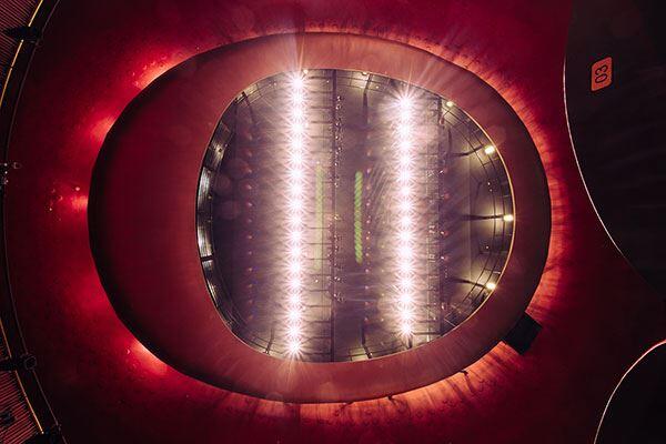 暖色系のレッドカラーを基調とした大劇場は、優雅で荘厳な佇まいで訪れる人々を迎え入れ、舞台と客席の距離が近いため、一体感のある臨場感を味わうことができます。