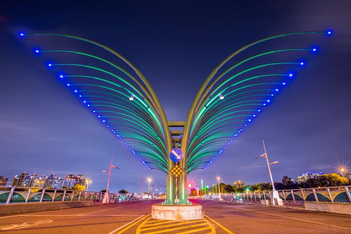 「新桃花源橋」は白い半円形の橋で、シンプルなトレンド感を有しています。横から見るとハープのような「浪漫情人橋」はピンク色で、夜は特にロマンチックです。「藍天白雲橋」は古典的でエレガント。「蝴蝶橋」とも呼ばれる「大坑清新橋」はインスタ映えで人気の夜景スポットで、フェイスブックにチェックインするにも人気です。