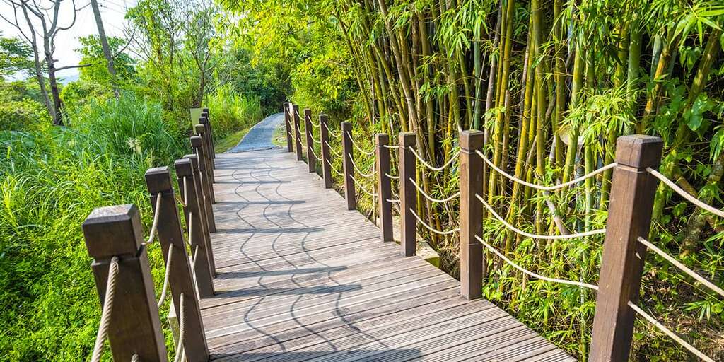 アンカーポイント大坑2号登山歩道は全長1.2キロ。標高は478メートルから695メートルで、起点が2号登山歩道登山口、終点が大坑5号登山歩道につながっています。勾配が60〜80度に達する急坂が二ヶ所があり、稜線上に細長く曲がりくねって伸びる原木登山道から、頭嵙山系の山並みを見渡すことができ、写真映えは間違いなしです。