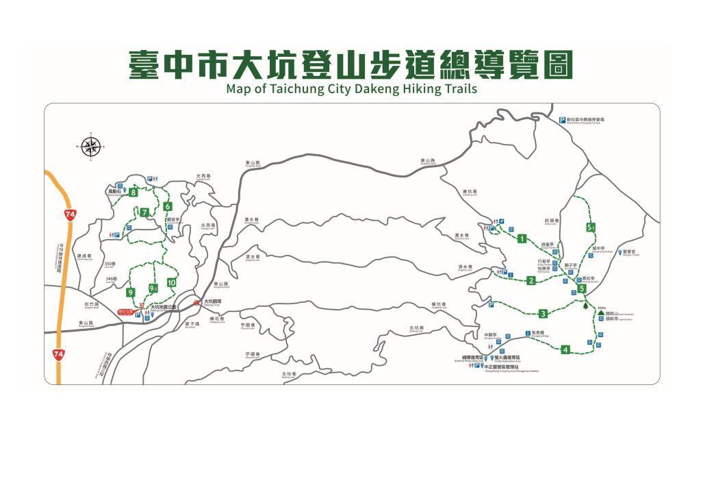 - 特 色:5号登山歩道は1号~4号登山歩道の終点でもあります。沿路には黒松亭・高峰亭・頭嵙山頂など、眺めのいい展望台があり、透視度がよければ、台中市内や大肚台地まで見通せます。