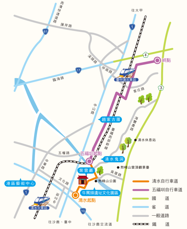 写真紹介アンカーポイント全長約10キロメートル。古くからある懐かしい景観の中を走ります。田舎道を自転車で走り、横切る電車を追いかけ、古民家の側で咲く夏のロータスを眺めてください。稲の香も五感を刺激します。健康的でのんびりとしたレジャーをお楽しみください。インスタグラムで話題になった美しい橋のある景色はここから撮影することができます。続きを読むインフォメーション住所 台湾台中市清水区福圳街一段51巷巷口 電話04-25152575アクセス方法お選びになった出発点から最も適切な交通手段で計画を進めます。