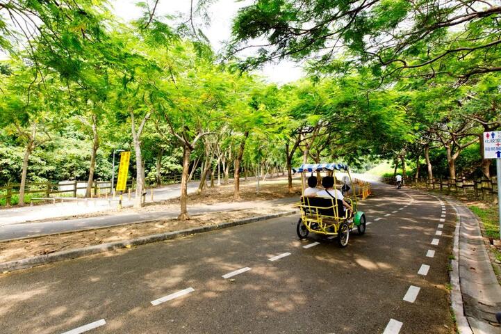 国道4号の終点に位置し、高架橋の下には広大な公共駐車場を設けて,交通が便利なサイクリングロードです。東豊自行車緑廊は豐原区から石岡区を経由して東勢区を結ぶ自転車道で、全長は約12kmあり、ロードの両側に植えられている鬱蒼たる木が近隣にある藍色の大甲渓と美しい風景を織り成します。台中線の旧線廃線跡沿いに設置された后豊鉄馬道は、「東豊緑色走廊」に近くて全長4.6キロほどのロードで、途中に長さ382メートルの「大甲渓花梁鉄橋」と全長1,273メートルの9号トンネルがあります。