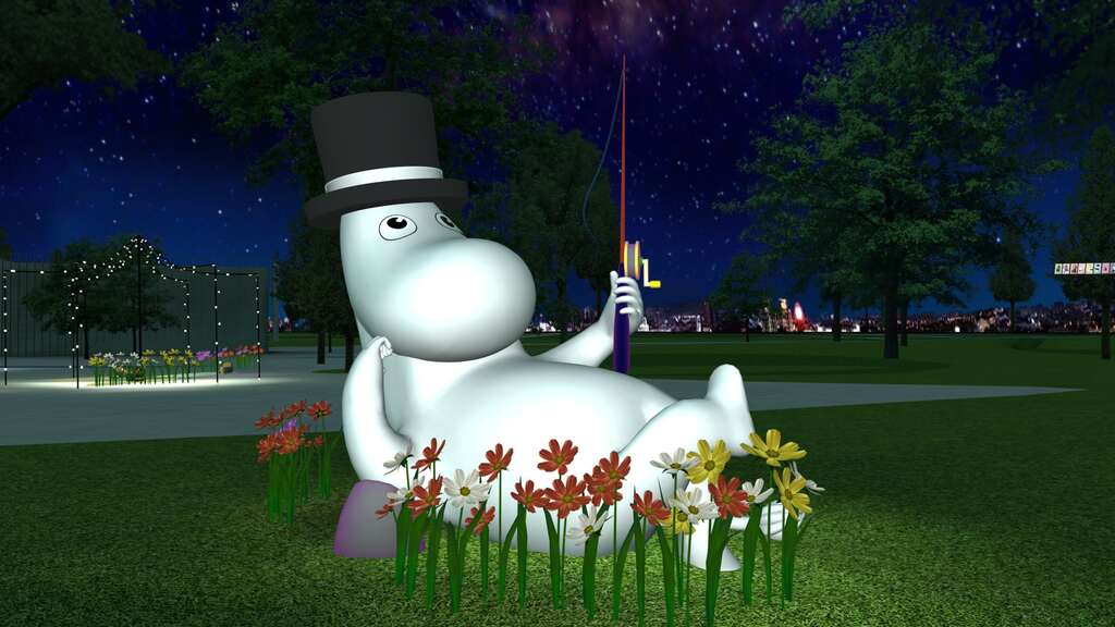 奥から聞こえてくる楽しげな音に導かれ、ムーミンが創り出す「キャンプtime」展示エリアへと足を進めましょう。本エリアでは、公園の地形を巧みに生かし、湖畔の秘境を表現。心を静め、喧騒を手放すことのできる空間を作り上げました。ムーミン一家(The Moomins)は、「湖辺星夜」と「月下キャンプ」という二つのテーマを通じて、北欧式の温もりを台中に届け、思いやりと寄り添いこそが愛の最も真実な源であることを語ります。