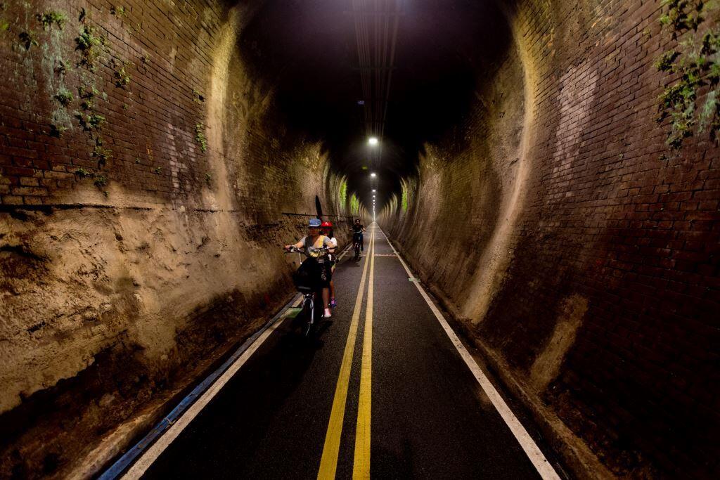 전신은 타이완철도 종단선 동쓰지선으로 전체 길이 12킬로미터, 타이중 펑위엔구, 스깡구, 동쓰구를 지나고 있으며, 전국에서 최초로 버려진 철길을 자전거 전용도로로 고쳐 사용한 곳입니다. 운행정지된 동쓰의 옛 철길은 임무를 마치고 은퇴한 후 아름다운 자전거 전용도로로 탈바꿈했습니다. 풍부한 객가문화, 쉐이쩐, 여러갈래의 논두렁길이 만들어내는 전원풍경, 끝없이 펼쳐지는 푸르름, 따지아강의 장려한 강과 계곡, 계곡에 가로놓인 메이즈철교 및 921대지진으로 형성된 단층폭포등 독특한 경관은 다지아강변에 가로놓인 푸른 용처럼 보입니다.