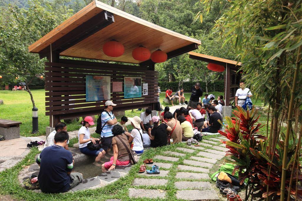구꽌온천구역은 빠시엔산을 등에 지고, 앞은 따지아강을 마주보고 있으며, 온천문화관, 샤오라이 산책로, 샤오라이 구름다리, 구꽌 구름다리, 족욕 온천지, 천년된 오엽송등의 유명한 관광지를 포함하고 있습니다. 구꽌온천의 수질은 탄산천에 속해 황화물과 염분을 포함하고 있습니다. 대량의 황화물을 포함하고 있어 가까이 가면 황화물 특유의 코를 찌르는 냄새가 납니다. 일본 메이지시대의 천황도 이 곳에 몸을 담그고 한번만에 아들을 얻었다고 해서, <셩난탕(아들낳는온천)>으로 불린다는 전설이 있습니다.