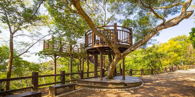 360도 노천전망대에서는 타이중시 전경을 조망할 수 있고, 나무그늘 아래에서 쉬거나, 담소를 나누거나, 가족친구들과 함께 시원한 산바람을 즐길 수 있습니다.