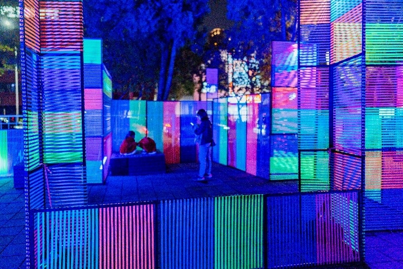 알록달록한 색으로 엮어 마치 미로와 같은 효과를 보여주고, 화려한 색감은 생명의 풍부함과 다채로움을 상징하고, 또 각각의 생각이 반짝이는 미래를 창조한다는 뜻도 내포하고 있습니다. 어른 아이 모두 함께 재미있게 탐험을 즐기며, 각각의 입구는 미지의 기대로, 각각의 출구는 새로운 시작이 되길 바랍니다.