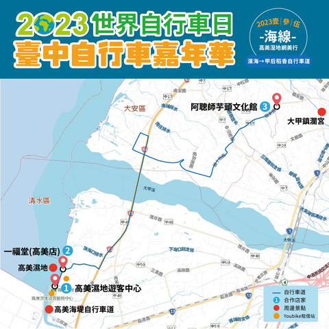 4 | 海线 | 高美湿地网美行 | 滨海自行车道→ 甲后稻香自行车道 |