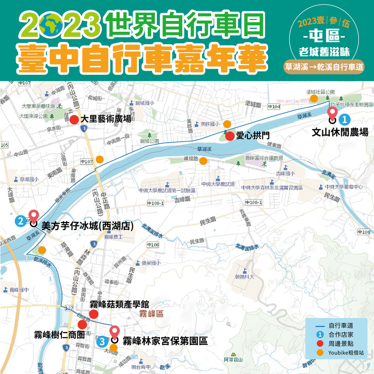 5 | 屯区 | 老城旧滋味 | 草湖溪自行车道→乾溪自行车道 |
