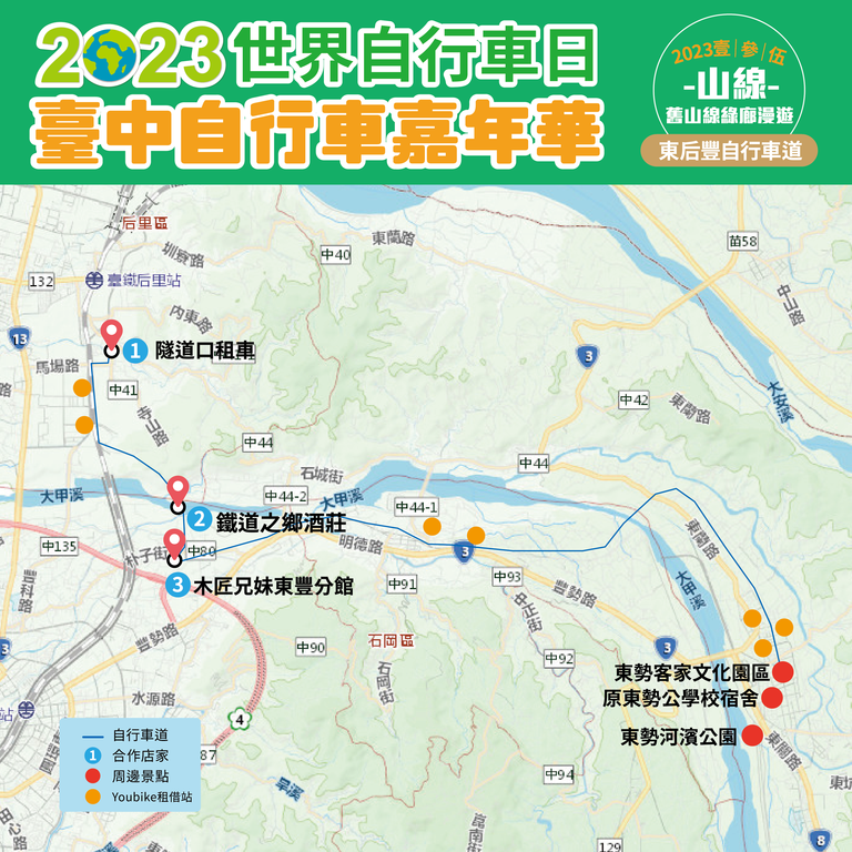 - 路线2 - 上车点:东势河滨公园→下车点:东势客家文化园区