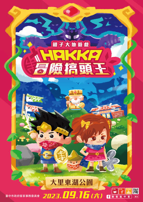 (一) 「亲子大地游戏~HAKKA冒险搞头王~」活动将客家文化融入活动主核心,新创设计游戏人物与关卡,通过游戏形式激发民众参与热度,让大小朋友认识、感受客家文化魅力,促进亲子之间的情感连结与客家文化推广,活动寓教於乐、向下扎根学习。