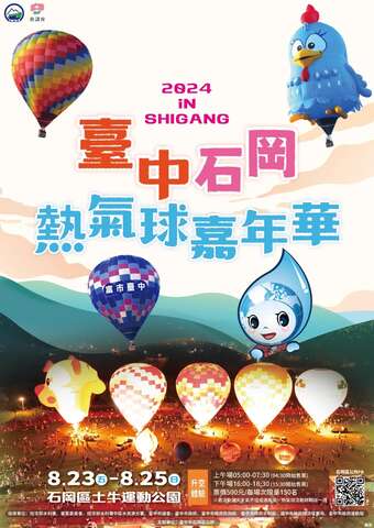 今年造型热气球是巴西人气卡通小鸡「洛蒂.多蒂」,现场还有石冈吉祥物「水滴宝宝」等15颗造型球将轮番展演,让大家尽情欣赏。