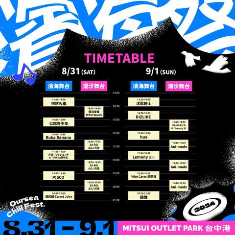 🏖演出阵容|甜约翰 Sweet John|随性|P!SCO|hue|Who Cares 胡凯儿|DIZLIKE|公馆青少年|狗吠火车|Lemony [TH]|月宵◇クレシェンテ & TOYPLA研修生|Ruka Banana|沈默绅士|Ani-mode|DJ ÄGI & DJ 月亮|独流音乐 WTM Studio|HomeRich & Jimmy H.