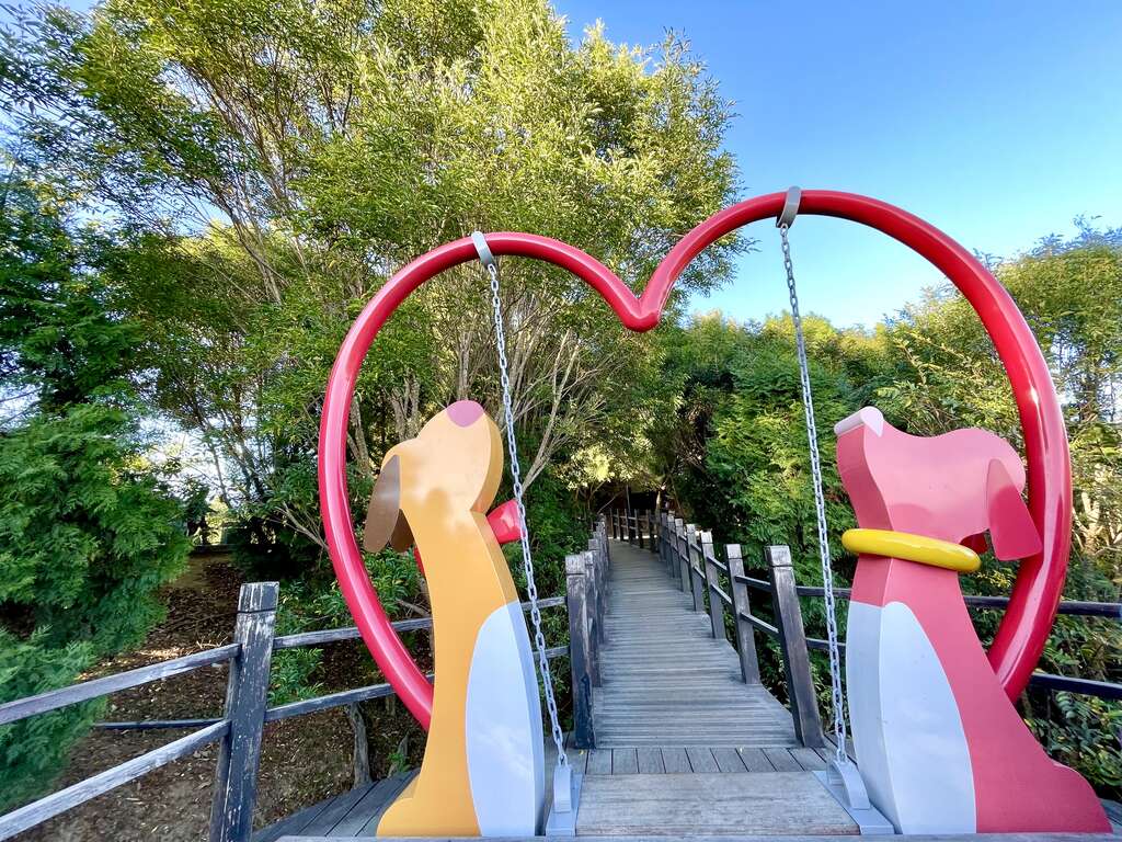 观旅局进一步说明,为提升互动性与趣味性,步道沿线设置多处QR Code与甜蜜互动装置,游客可边走边扫描、阅读故事内容,或留下合影纪念。来到山顶的「小狗秋千」时,不妨停下脚步,透过数位互动深入了解「小久」与「阿知」对未来的想像,或许也能在故事中,看见自己与家人、伴侣的影子。这不只是一趟爬山行程,更是一场与自己、与重要之人对话的心灵旅程。