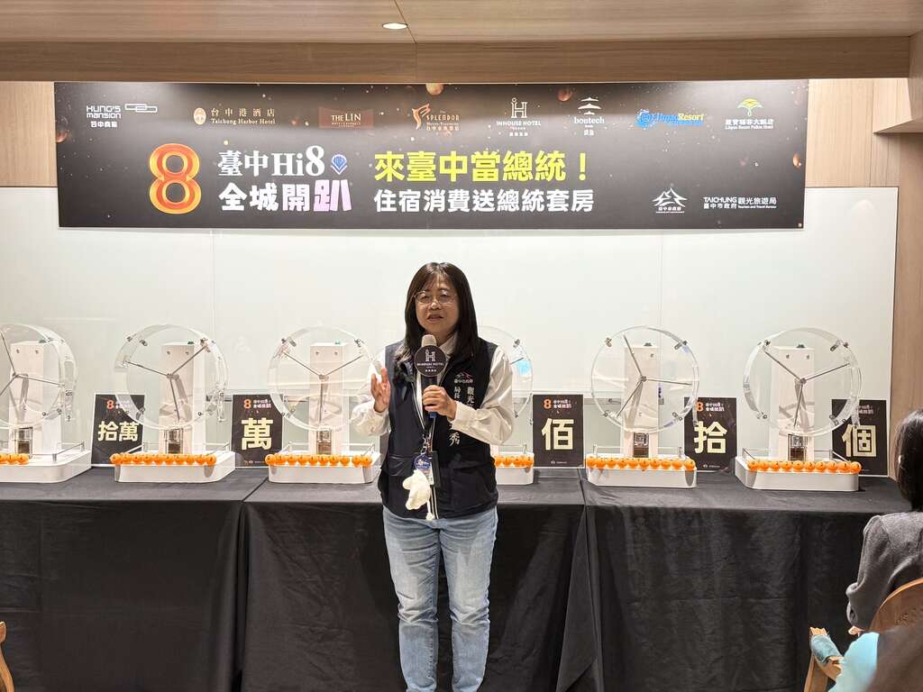 观旅局补充,「来台中住宿消费送总统套房」系列活动後续将於1/28林酒店、2/9金典酒店接力办理,并於观旅局脸书粉丝专页「大玩台中」直播,持续以多元行销方式推广台中观光,欢迎民众安排来台中旅游住宿,享受优质旅宿服务,感受城市魅力。诚挚邀请全国民众把握「台中Hi8全城开趴」期间规划台中之旅,入住台中旅宿、登录发票参加抽奖,为旅程增添更多期待与惊喜(台中嗨8 全城开趴活动官网:https://www.taichung.gov.tw/hi8 )。