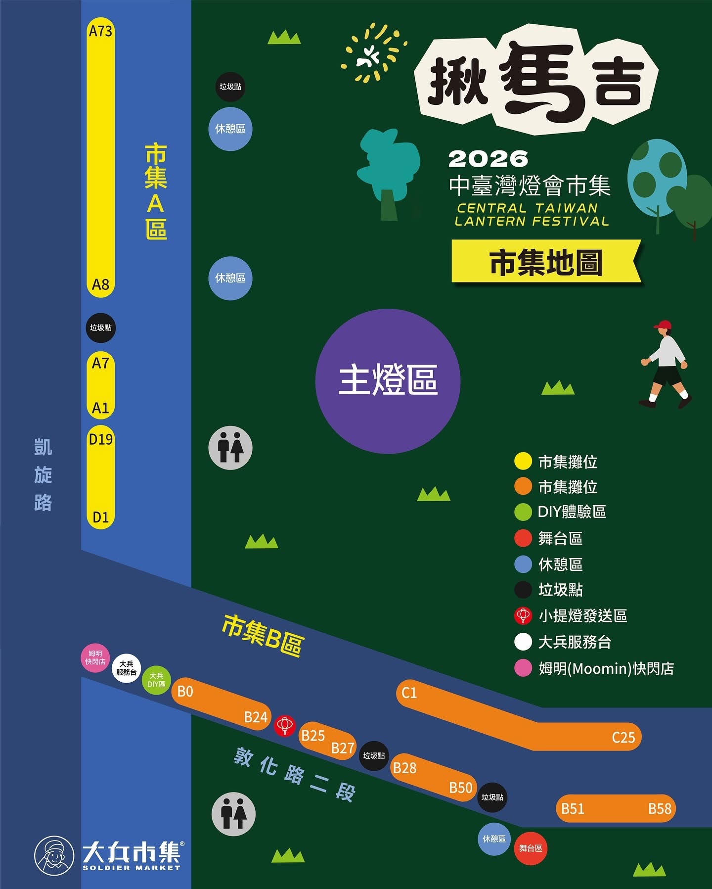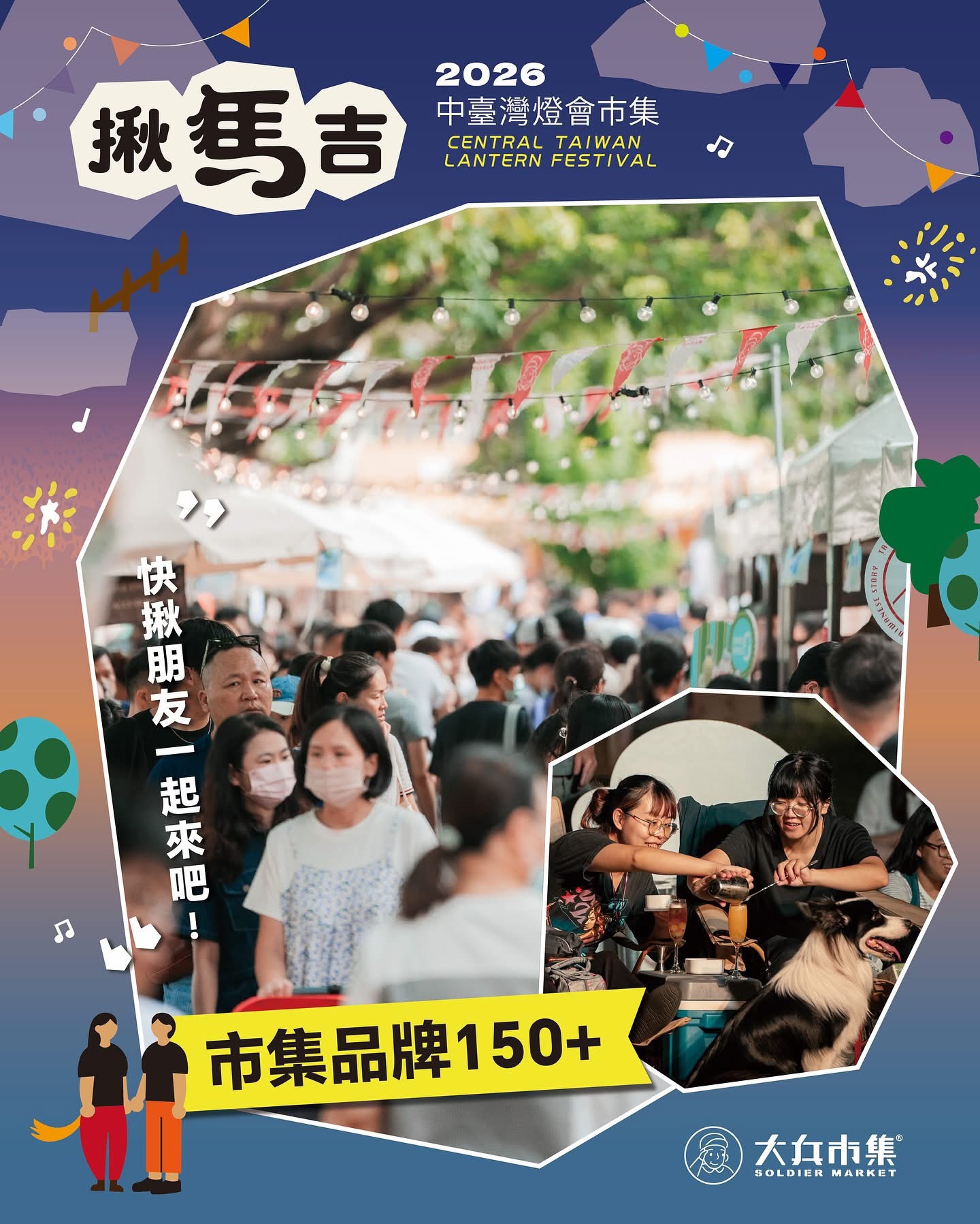 陈局长进一步指出,来到中台湾灯会不只可以追极光,还有好吃又好买的市集可以逛。适逢农历生肖马年,今年灯会携手在地团队「大兵市集」以「揪马吉」为主题,传达台中广邀全国民众携家带眷、呼朋引伴来赏灯的心意,四大亮点包括「超过150家品牌进驻」、「3种DIY体验活动」、「马年限定视觉拍贴体验」、「32组以上街头艺人」轮番演出,无论是亲子家庭、情侣出游或好友相约,皆能在「揪马吉」市集感受到浓厚的年味。