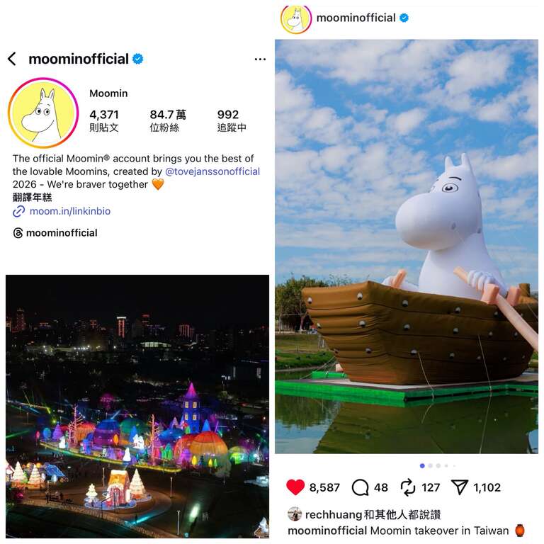 陈局长进一步指出,姆明一族(The Moomins)所传递的「家庭、冒险、纯真」精神,在灯会期间疗癒了无数人的心,Moomin全球官方FB、IG也专文分享了姆明一族(The Moomins)登入台中中央公园,在极光下划船、露营的疗癒魅力。灯会展期倒数计时,欢迎所有曾在此留下欢笑的民众都能携家带眷,提着点亮的「姆明小提灯」再次重游,不仅是为了向姆明一族说再见,更是要谢谢它们带来台中的温暖感动,让大家带着这份幸福感「MOOMIN ON」。
