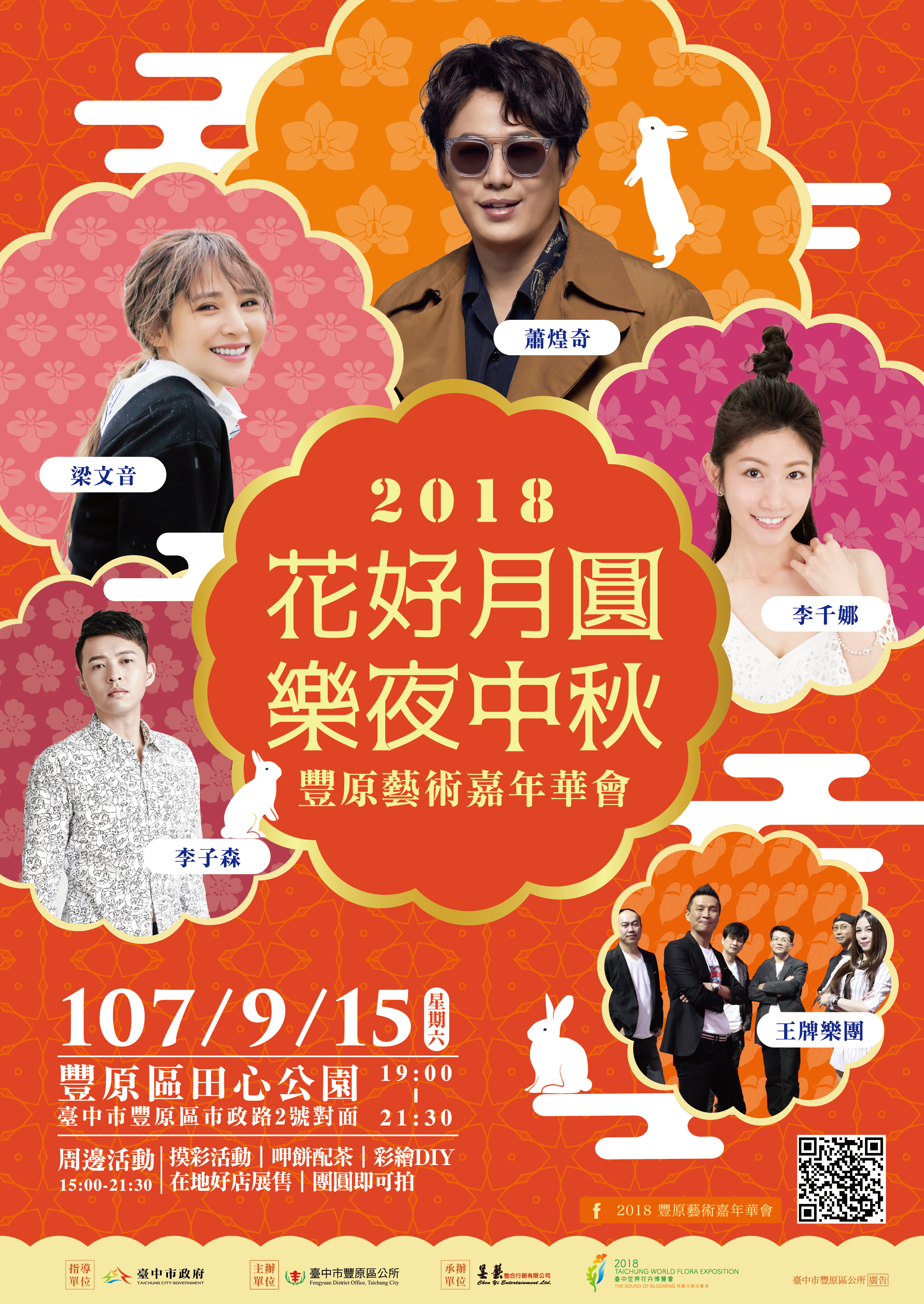迎接中秋节,丰原区公所推出「2018丰原艺术嘉年华会-花好月圆乐夜中秋」,今年以「花好月圆乐夜中秋」为主题,除欢庆中秋,也宣传即将开幕的台中花博,让更多民众认识丰原葫芦墩展区。晚会当天邀请国内重量级歌手演出,包括今年度摘下金曲奖台语歌王的萧煌奇、发行最新专辑的「巴冷公主」梁文音、荣获金钟奖的李千娜、新声代歌手李子森、PUB天团王牌乐团等,卡司阵容超强,精彩可期。
