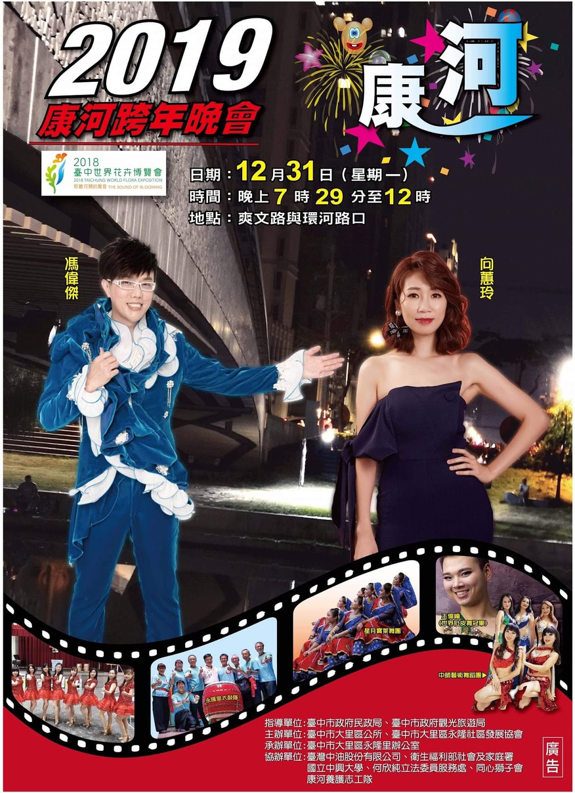 时间飞快又是一年最终的时刻,让我们相约河滨公园再见。王识贤、周定纬、刘劭希、黄仁善、梁卉淇、王笠人、王牌乐团、蓝薰、胡闹一番、大女孩BIG GIRLS、DJ DIDI、山城石府、弘韵合唱团、青枫舞剧坊等人与您欢度跨年,别忘了12月31日下午6点与我们一起迎接2019。