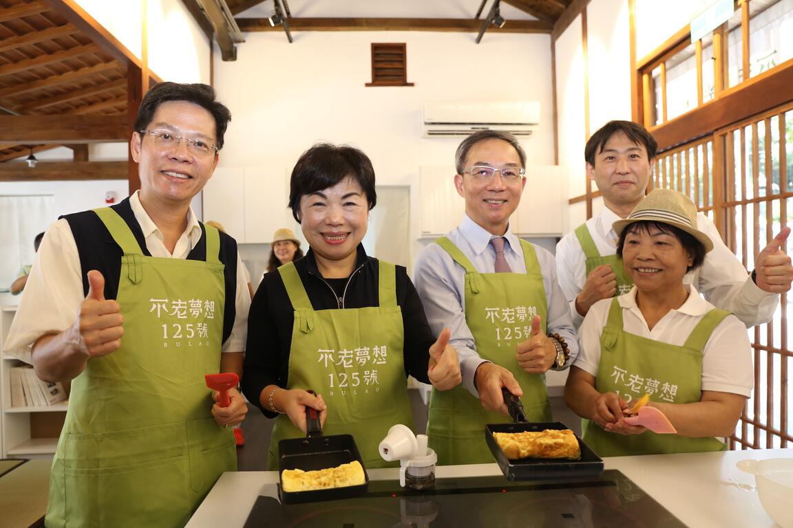 杨副市长也在参观「不老食光」餐厅後,与高龄71岁的不老料理人陈美月等人一起制作玉子烧,她表示,「不老梦想125号」结合文化资产、社会福利及不老食光餐厅,除可推展台中市长公馆之美,更能结合银发族长辈快乐生活的一面,欢迎所有民众前来参观并享用美食,也能学习如何照顾长辈。