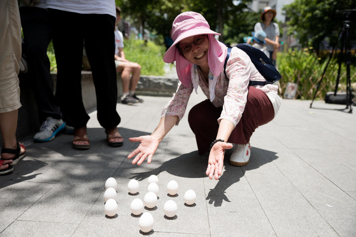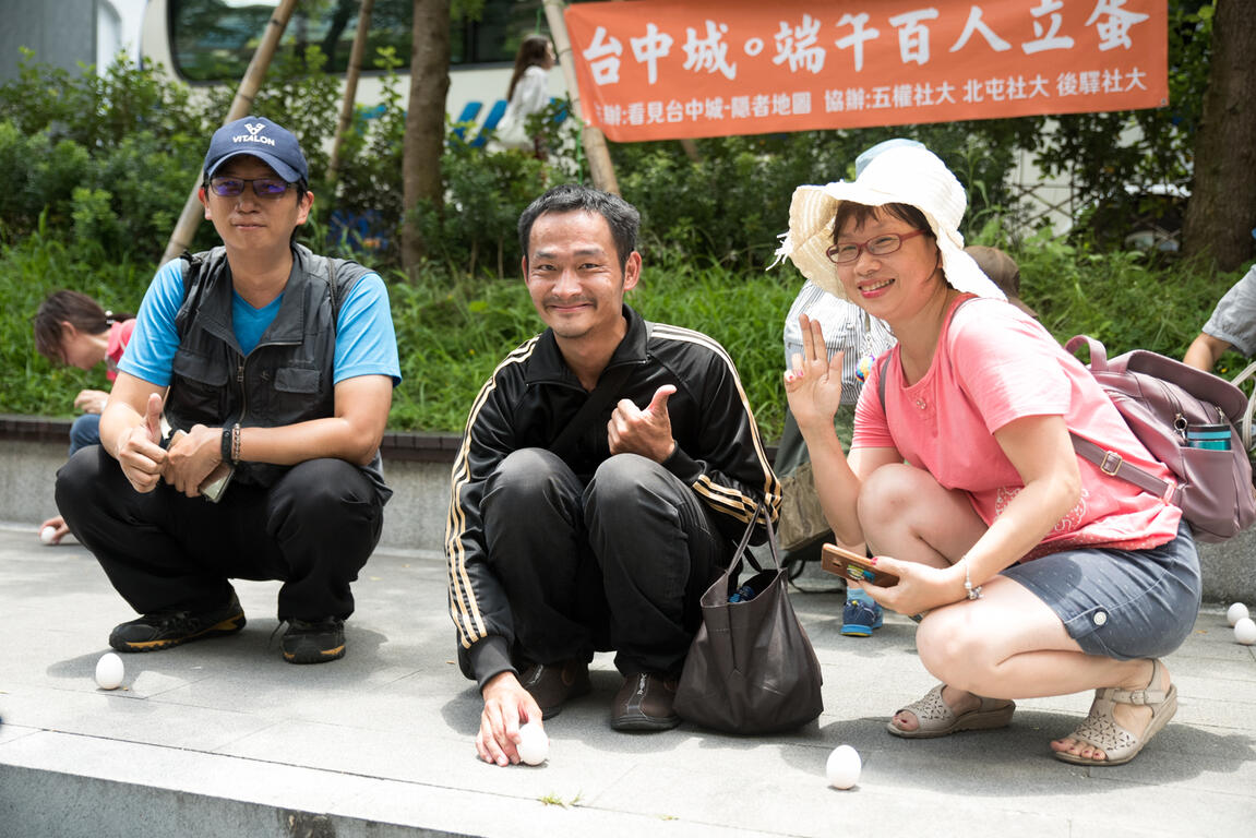 辅导弱势进行台中旧城区域导览的「看见台中城-隐者地图」导览组织,今(7)日举办 「台中城端午百人立蛋」活动,曾是街友的城市导览员带领大家认识旧城区,时至中午时分,百位参加导览民众手上拿着鸡蛋,开始在绿川立蛋,新闻局主秘陈瑜也出席同乐,一起度过温馨的端午节。