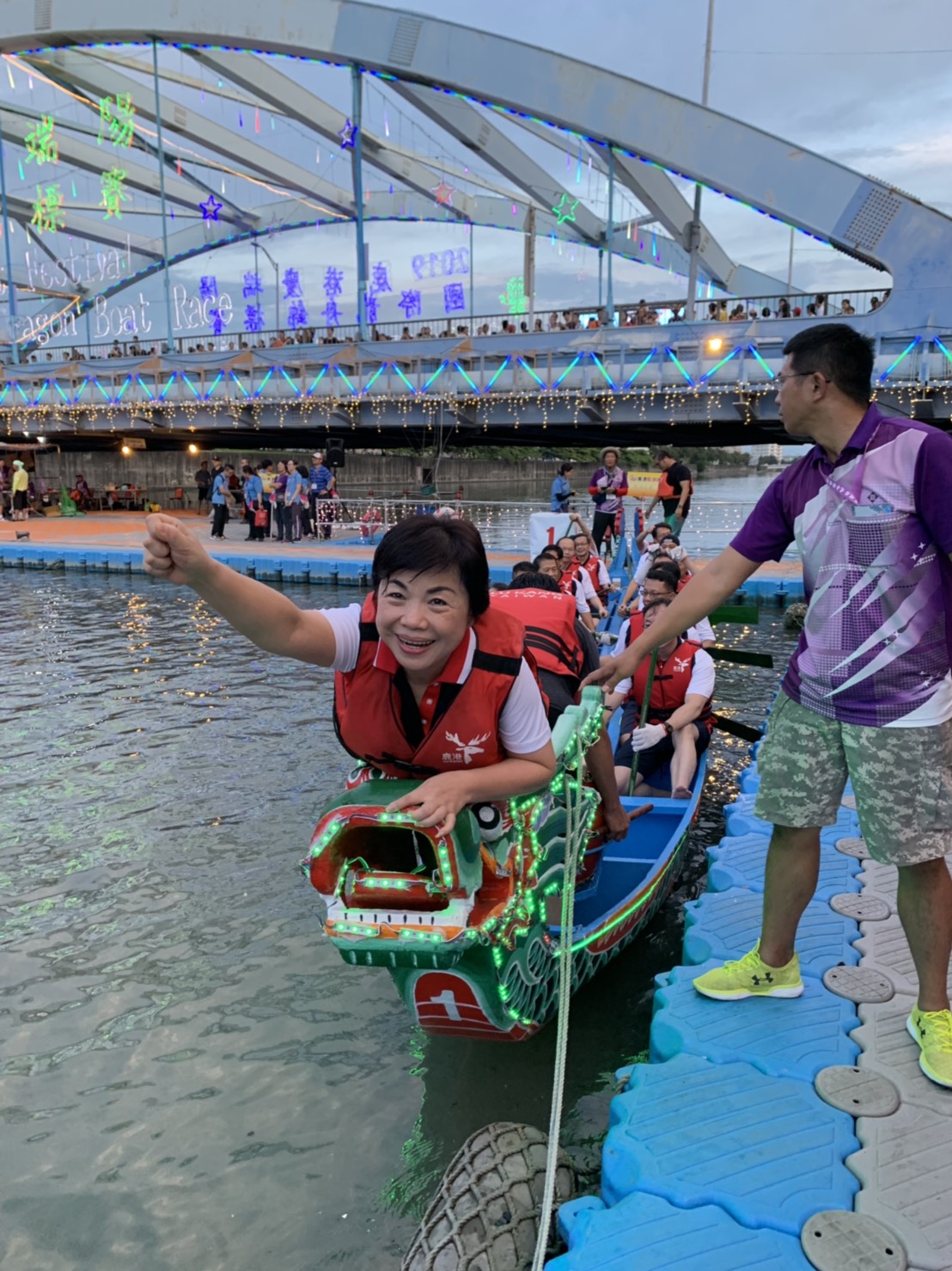 鹿港庆端阳「国际龙舟锦标赛」6月5日起至今(7)日一连三天在福鹿溪龙舟会场隆重展开,台中市政府为推广全民运动、培养团队合作精神,由副市长杨琼璎率领参事、参议及局处首长等人员组队参赛,与中部各县市首长团队进行交流,并邀请大家参加首届台中购物节,一起拼经济。
