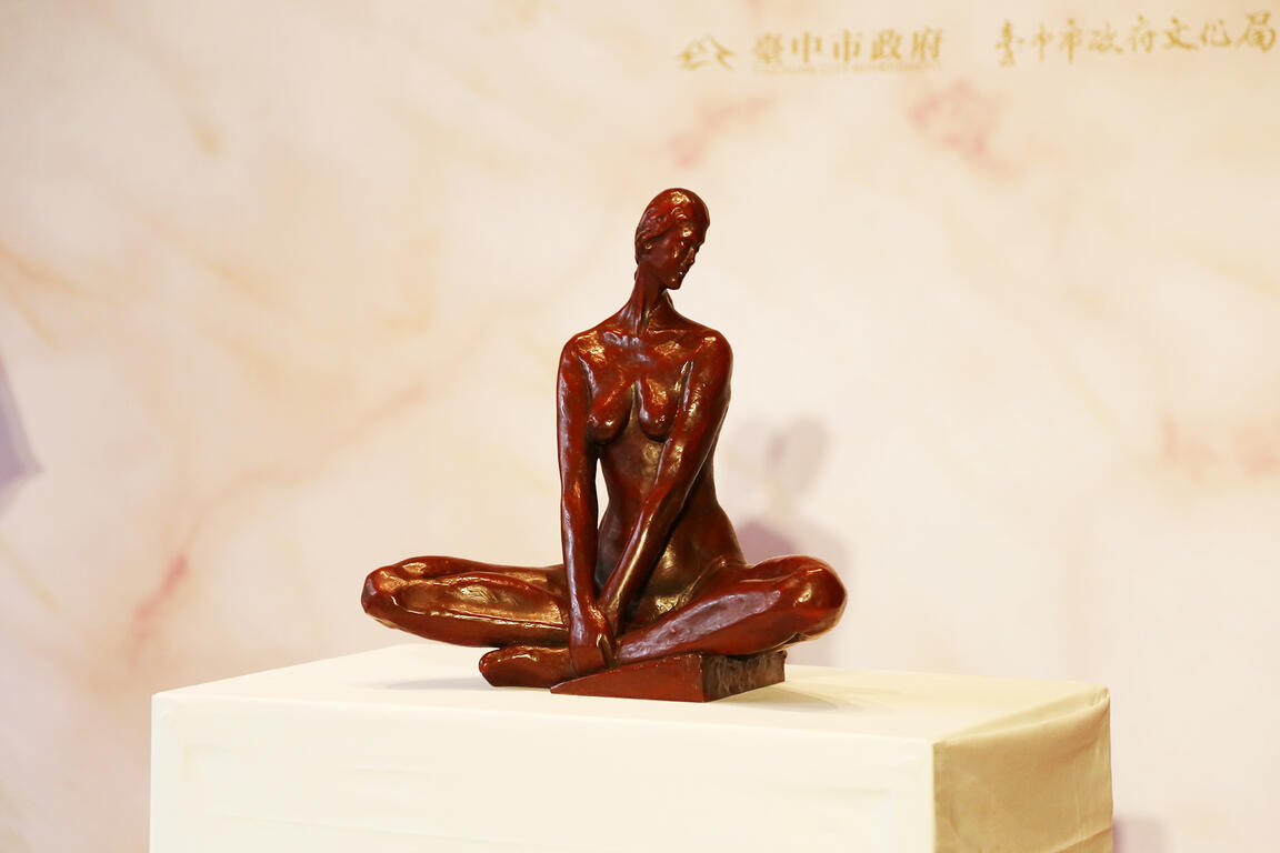 为文化局设计金艺奖、台中市工艺师奖座的雕塑家黄映蒲表示,在届龄退休之际,有能力为社会尽一份力量,感到非常踏实,此次提供的作品〈思〉是「红尘」主题展的作品之一,总共6件,第一件由高美馆收藏,此次赞助的作品是6件里面的最後一件。